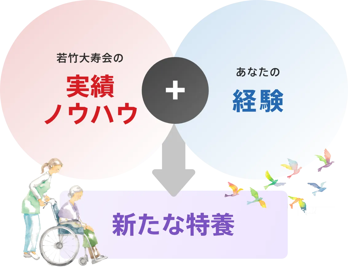 そして、そこにみなさんのこれまでの「経験」を組み合わせることで、『次世代の特養』を目指せれば・・・と若竹大寿会は考えています。